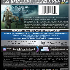 4En lo más crudo de la Primera Guerra Mundial, dos jóvenes soldados británicos, Schofield (George MacKay) y Blake (Dean-Charles Chapman) reciben una misión aparentemente imposible. En una carrera contrarreloj, deberán atravesar el territorio enemigo para entregar un mensaje que evitará un mortÃfero ataque contra cientos de soldados, entre ellos el propio hermano de Blake.