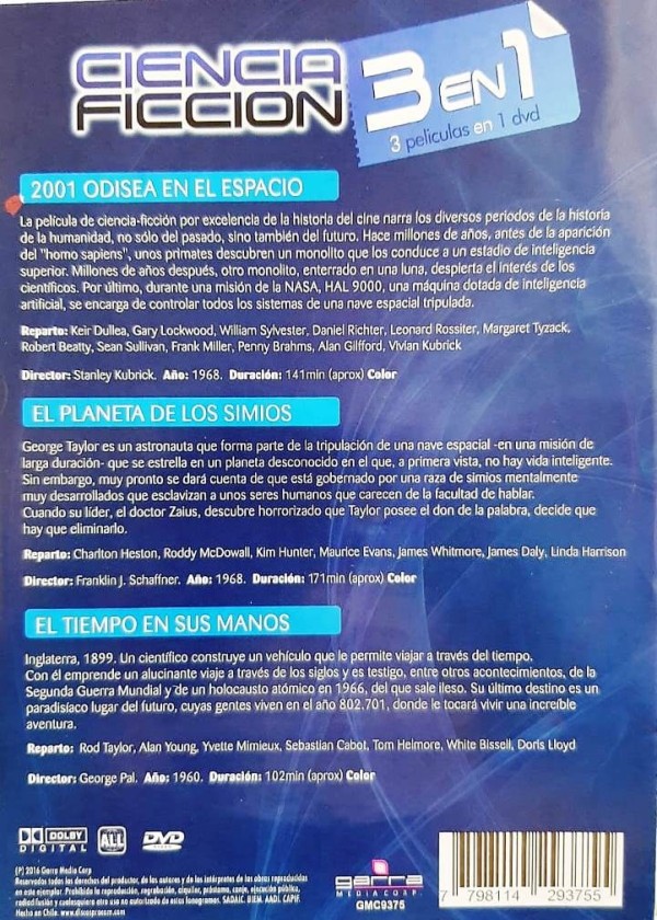 2001 ODISEA EN EL ESPACIO / EL PLANETA DE LOS SIMIOS / EL TIEMPO EN SUS MANOS