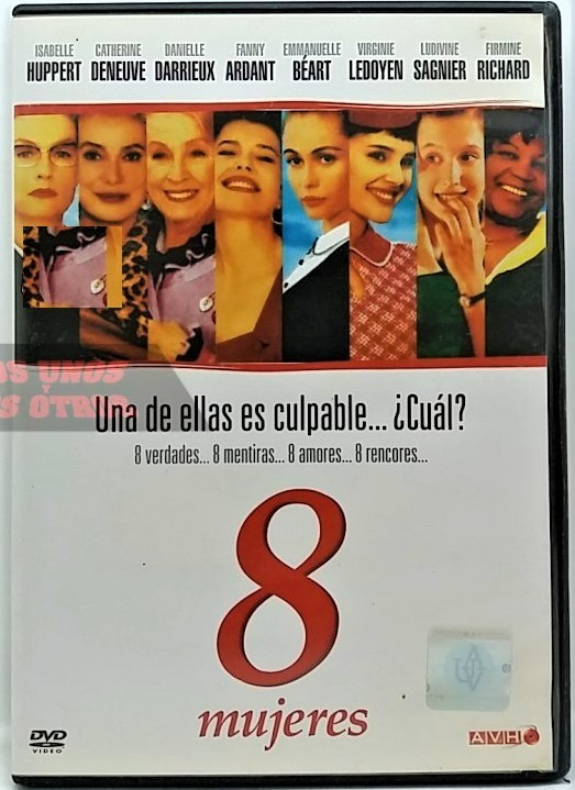 Cantidad de Discos: 1 | Lanzamiento: 2002 | Género(s): Comedia | Audio: Inglés, Español | Subtítulos: Español, Inglés | Título: 8 mujeres | Director(es): François Ozon | Reparto: Catherine Deneuve, Emmanuelle Béart, Isabelle Huppert, Fanny Ardant, Virginie Ledoyen, Danielle Darrieux, Ludivine Sagnier, Firmine Richard | Norma / Región: NTSC (Región 1, 4)