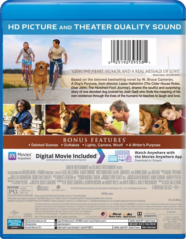Reparto: Dennis Quaid, Britt Robertson, Bryce Gheisar, Juliet Rylance, Peggy Lipton, Luke Kirby, Josh Gad, Kirby Howell-Baptiste, Pooch Hall, K.J. Apa, John Ortiz, Gabrielle Rose