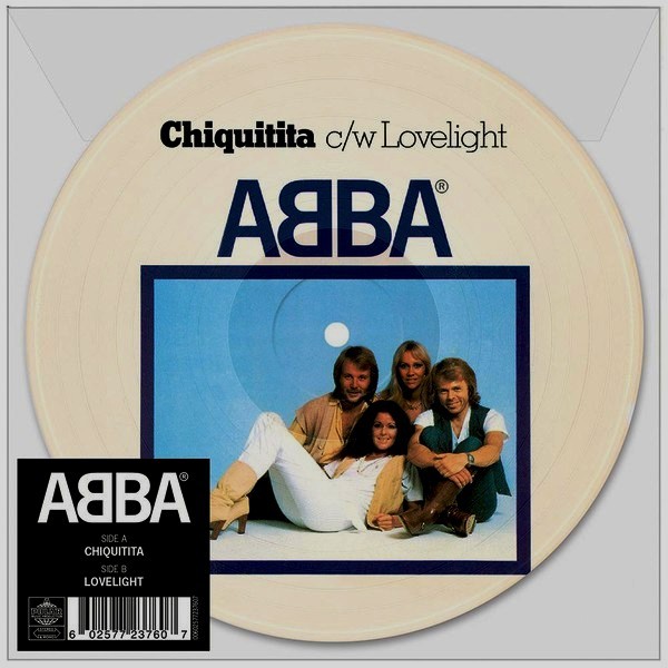 Artista(s) / Grupo: ABBA | Cantidad de Discos: 1 LP 7″ Color Disc | Lanzamiento: 2019 | Género(s): Pop | Estilo(s): Schlager | TÃtulo: Chiquitita c/w Lovelight