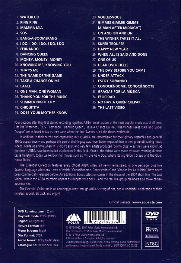 Artista(s) / Grupo: ABBA | Cantidad de Discos: 1 | Lanzamiento: 2012 | Género(s): Electronic, Pop | Estilo(s): Synth-pop, Europop | TÃtulo: The Essential Collection | Artista(s) / Grupo: ABBA | Cantidad de Discos: 1 | Lanzamiento: 2012 | Género(s): Electronic, Pop | Estilo(s): Synth-pop, Europop | TÃtulo: The Essential Collection