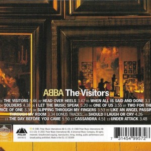 Artista(s) / Grupo: Abba | Cantidad de Discos: 1 CD | Lanzamiento: 2001 | Género(s): Pop | Estilo(s): Europop, Dance, Ballad | TÃtulo: The Visitors | Artista(s) / Grupo: Abba | Cantidad de Discos: 1 CD | Lanzamiento: 2001 | Género(s): Pop | Estilo(s): Europop, Dance, Ballad | TÃtulo: The Visitors