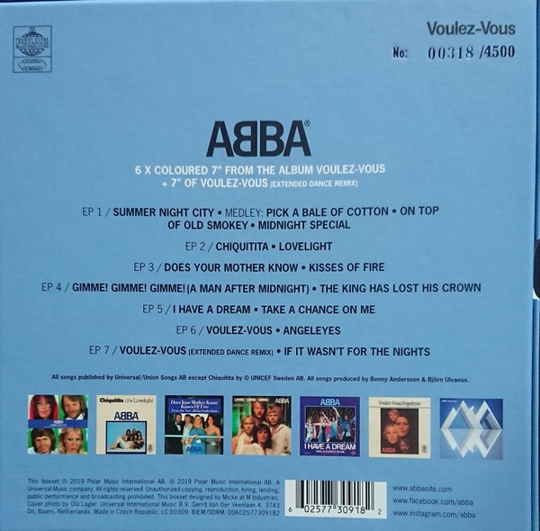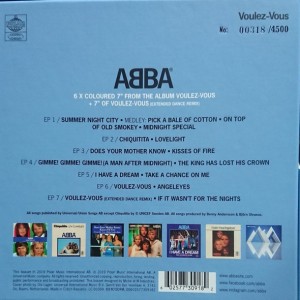 Artista(s) / Grupo: ABBA | Cantidad de Discos: 7 LP 7″ Color Disc | Lanzamiento: 2019 | Género(s): Pop | Estilo(s): Brit Pop | TÃtulo: Voulez-Vous – The Singles | Artista(s) / Grupo: ABBA | Cantidad de Discos: 7 LP 7″ Color Disc | Lanzamiento: 2019 | Género(s): Pop | Estilo(s): Brit Pop | TÃtulo: Voulez-Vous – The Singles