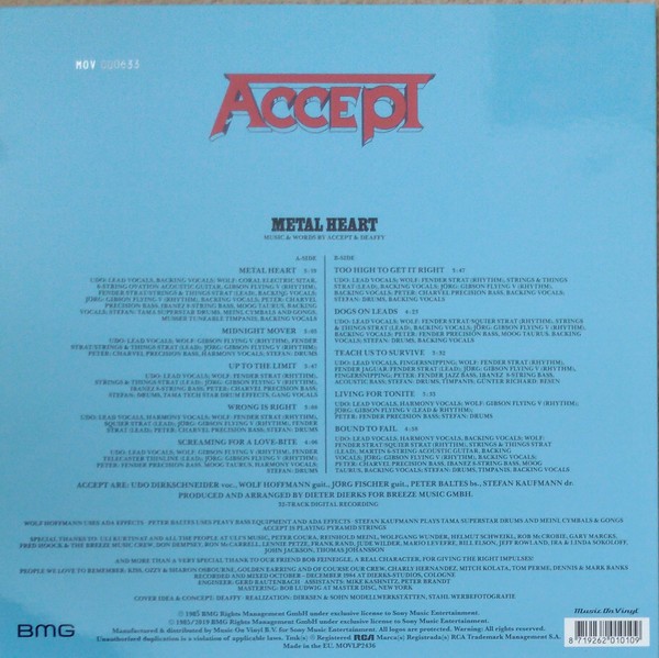 Artista(s) / Grupo: Accept | Cantidad de Discos: 1 LP | Lanzamiento: 2019 | Género(s): Rock | Estilo(s): Heavy Metal | Título: Metal Heart | Artista(s) / Grupo: Accept | Cantidad de Discos: 1 LP | Lanzamiento: 2019 | Género(s): Rock | Estilo(s): Heavy Metal | Título: Metal Heart | Artista(s) / Grupo: Accept | Cantidad de Discos: 1 LP | Lanzamiento: 2019 | Género(s): Rock | Estilo(s): Heavy Metal | Título: Metal Heart