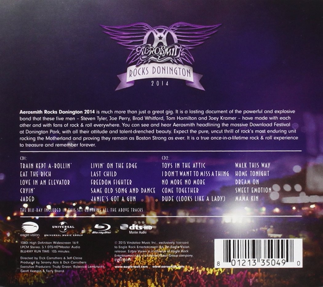 Artista(s) / Grupo: Aerosmith ‎ | Cantidad de Discos: blu ray + 2 cd | Lanzamiento: 2015 | Género(s): Rock | Estilo(s): Hard Rock, Arena Rock, Classic Rock | TÃtulo: Rocks Donington 2014 | Norma / Región: NTSC (Región A) | Artista(s) / Grupo: Aerosmith ‎ | Cantidad de Discos: blu ray + 2 cd | Lanzamiento: 2015 | Género(s): Rock | Estilo(s): Hard Rock, Arena Rock, Classic Rock | TÃtulo: Rocks Donington 2014 | Norma / Región: NTSC (Región A)