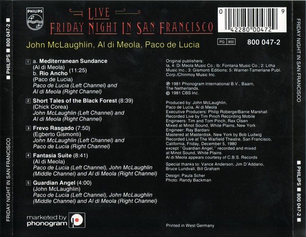 AL DI MEOLA JOHN MCLAUGHLIN Y PACO DE LUCIA – FRIDAY NIGHT IN SAN FRANCISCO