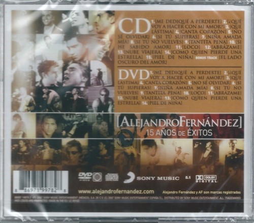 Artista(s) / Grupo: Alejandro Fernández | Cantidad de Discos: 1 DVD + 1 CD | Lanzamiento: 2007 | Género(s): Latin, Pop | Estilo(s): Ballad, Mariachi | Título: 15 Años De Éxitos | Norma / Región: Multizona | Artista(s) / Grupo: Alejandro Fernández | Cantidad de Discos: 1 DVD + 1 CD | Lanzamiento: 2007 | Género(s): Latin, Pop | Estilo(s): Ballad, Mariachi | Título: 15 Años De Éxitos | Norma / Región: Multizona