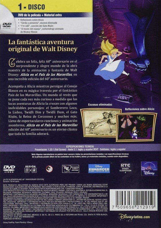 Historia de magia y fantasÃa en la que la joven Alicia se sumerge en el sorprendente PaÃs de las Maravillas y conoce a extraordinarios personajes como Tweedledee y Tweedledum, el Sombrerero Loco, La Reina de Corazones y el frenético Conejo Blanco.