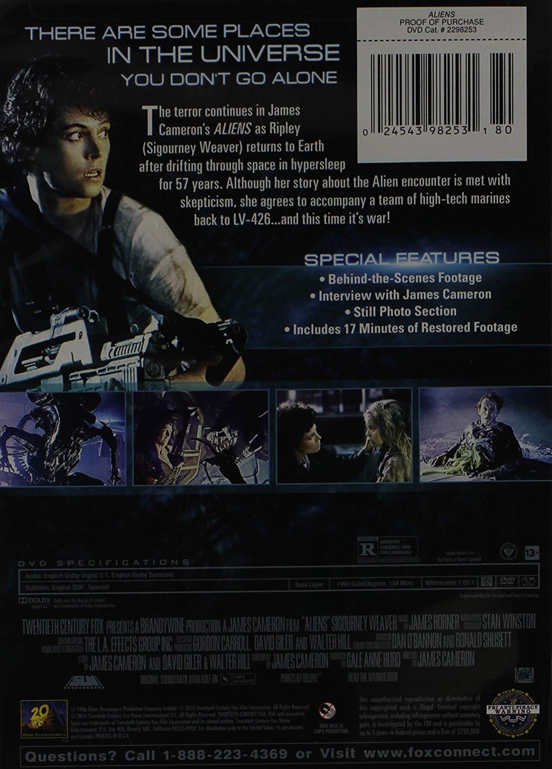 Cantidad de Discos: 1 | Lanzamiento: 2014 | Género(s): Acción, Ciencia Ficción | Audio: Inglés (Dolby Digital 2,0), Español (Dolby Digital 2,0), Español (Dolby Digital 2,0) | Subtítulos: Español, Inglés, Francés | Título: Aliens (1986) | Director(es): James Cameron | Reparto: Sigourney Weaver, Paul Reiser, Lance Henriksen, Michael Biehn, Bill Paxton, Carrie Henn, William Hope, Jenette Goldstein, Al Matthews, Mark Rolston, Ricco Ross | Norma / Región: NTSC 1 | Cantidad de Discos: 1 | Lanzamiento: 2014 | Género(s): Acción, Ciencia Ficción | Audio: Inglés (Dolby Digital 2,0), Español (Dolby Digital 2,0), Español (Dolby Digital 2,0) | Subtítulos: Español, Inglés, Francés | Título: Aliens (1986) | Director(es): James Cameron | Reparto: Sigourney Weaver, Paul Reiser, Lance Henriksen, Michael Biehn, Bill Paxton, Carrie Henn, William Hope, Jenette Goldstein, Al Matthews, Mark Rolston, Ricco Ross | Norma / Región: NTSC 1