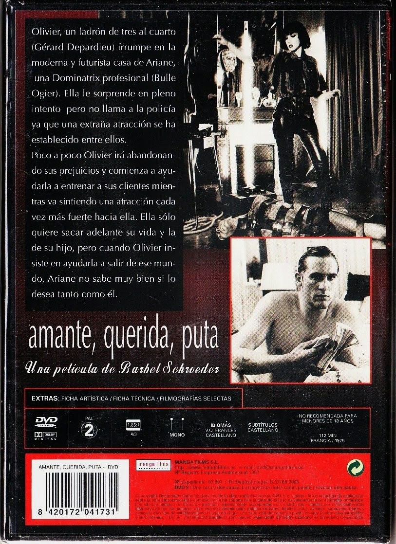 Cantidad de Discos: 1 | Lanzamiento: 1976 | Género(s): Drama | Audio: Francés, Español | SubtÃtulos: Español | TÃtulo: Amante, Querida, Puta | Director(es): Barbet Schroeder | Reparto: Gérard Depardieu, Bulle Ogier, Nathalie Keryan, Tony Taffin, Anny Bartanovski | Norma / Región: PAL (Región 2) | Cantidad de Discos: 1 | Lanzamiento: 1976 | Género(s): Drama | Audio: Francés, Español | SubtÃtulos: Español | TÃtulo: Amante, Querida, Puta | Director(es): Barbet Schroeder | Reparto: Gérard Depardieu, Bulle Ogier, Nathalie Keryan, Tony Taffin, Anny Bartanovski | Norma / Región: PAL (Región 2)