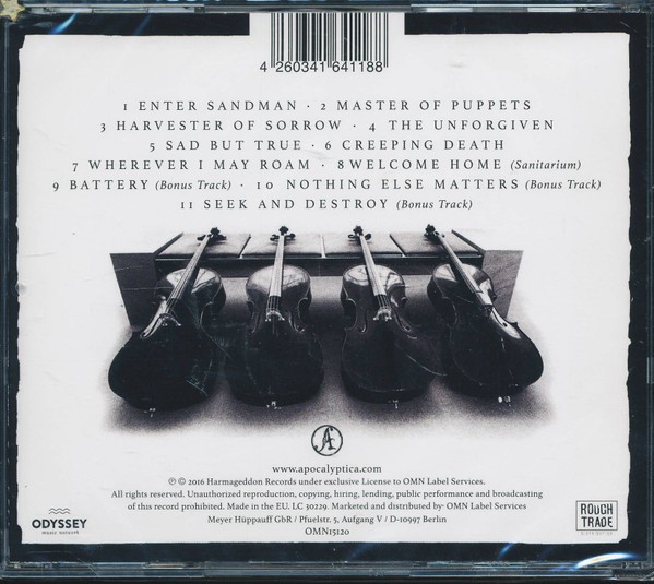 Artista(s) / Grupo: Apocalyptica | Cantidad de Discos: 1 CD | Lanzamiento: 22 Julio 2016 | Género(s): Rock | Estilo(s): Alternative Rock, Modern Classical | TÃtulo: Plays Metallica by four Cellos | Artista(s) / Grupo: Apocalyptica | Cantidad de Discos: 1 CD | Lanzamiento: 22 Julio 2016 | Género(s): Rock | Estilo(s): Alternative Rock, Modern Classical | TÃtulo: Plays Metallica by four Cellos