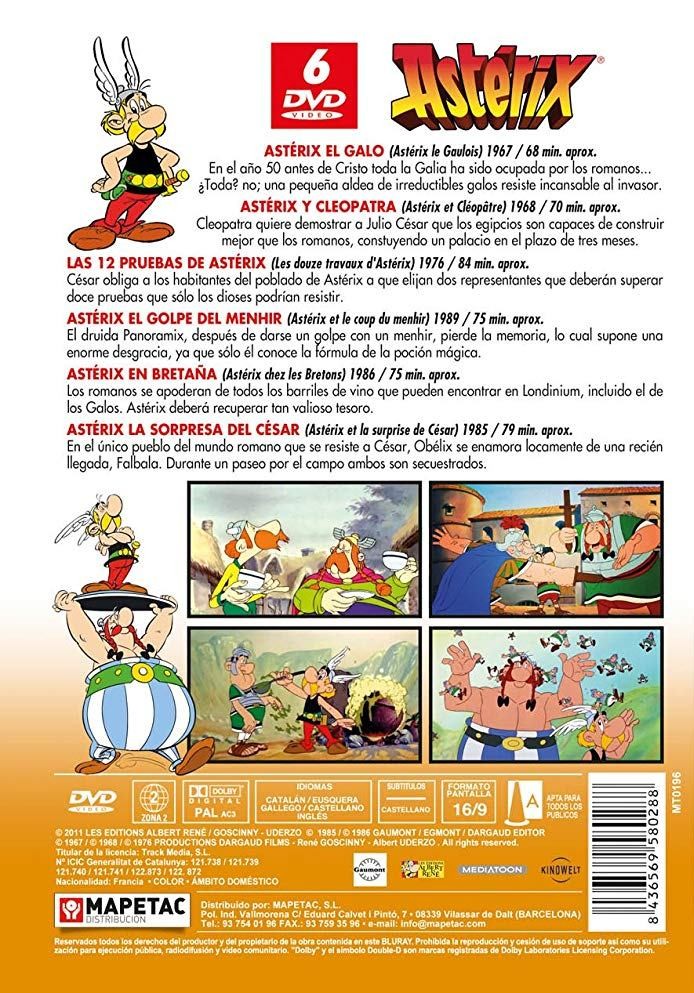 TÃtulo: Largometrajes animados – Astérix le Gaulois (1967) / Astérix et la surprise de César (1985) / Astérix et Cléopâtre (1968) / Astérix chez les Bretons (1986) / Les douze travaux d’Astérix (1976) / Astérix et le coup du menhir (1989)