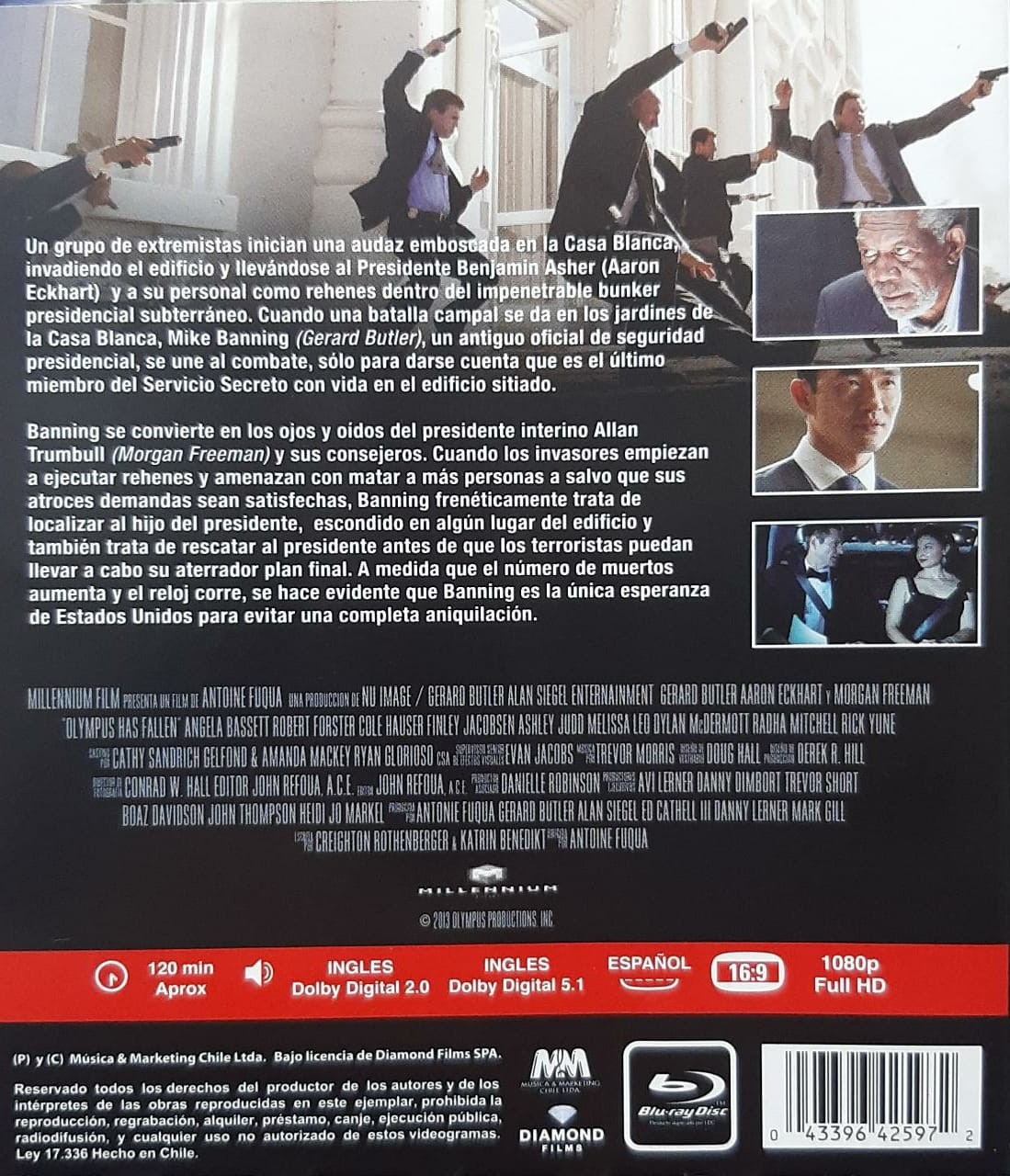 Cantidad de Discos: 1 | Lanzamiento: 2013 | Género(s): Acción, Thriller, Fantástico | Audio: Inglés (Dolby Digital 2.1) | Subtítulos: Español | Título: Olympus has fallen u Objetivo la Casa Blanca u Olimpo bajo fuego | Director(es): Antoine Fuqua | Reparto: Gerard Butler, Aaron Eckhart, Morgan Freeman, Angela Bassett, Robert Forster, Dylan McDermott, Cole Hauser, Finley Jacobsen, Melissa Leo, Radha Mitchell, Rick Yune, Ashley Judd, Han Soto, Arden Cho, Sean O’Bryan, Tory Kittles, Jason Yee, Amber Dawn Landrum | Norma / Región: Multizona | Cantidad de Discos: 1 | Lanzamiento: 2013 | Género(s): Acción, Thriller, Fantástico | Audio: Inglés (Dolby Digital 2.1) | Subtítulos: Español | Título: Olympus has fallen u Objetivo la Casa Blanca u Olimpo bajo fuego | Director(es): Antoine Fuqua | Reparto: Gerard Butler, Aaron Eckhart, Morgan Freeman, Angela Bassett, Robert Forster, Dylan McDermott, Cole Hauser, Finley Jacobsen, Melissa Leo, Radha Mitchell, Rick Yune, Ashley Judd, Han Soto, Arden Cho, Sean