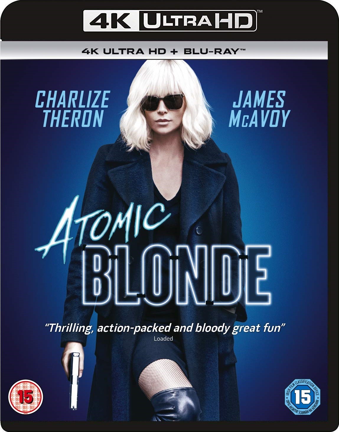 Cantidad de Discos: 1 4K + 1 BluRay | Lanzamiento: 2017 | Género(s): Acción. Thriller | Audio: Español, Inglés, Francés | SubtÃtulos: Español, Inglés, Francés | TÃtulo: Atómica | Director(es): David Leitch | Reparto: Charlize Theron, James McAvoy, Eddie Marsan, John Goodman, Toby Jones, James Faulkner, Roland Møller, Sofia Boutella, Bill SkarsgÃ¥rd, Sam Hargrave, Jóhannes Haukur Jóhannesson, Til Schweiger, Barbara Sukowa | Norma / Región: NTSC (Región A)