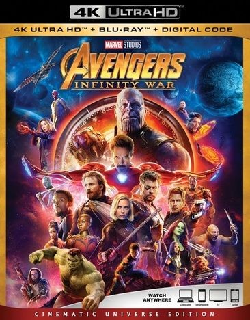 Cantidad de Discos: 1 4K + 1 BLR | Lanzamiento: 2018 | Género(s): Aventuras, Fantástico, Acción | Audio: Inglés, Francés, Español | SubtÃtulos: Inglés, Francés, Español | TÃtulo: Avenfgers: Infinity war | Director(es): Anthony Russo, Joe Russo | Reparto: Robert Downey Jr., Chris Hemsworth, Mark Ruffalo, Chris Evans, Scarlett Johansson | Norma / Región: Multizona | Series: Marvel
