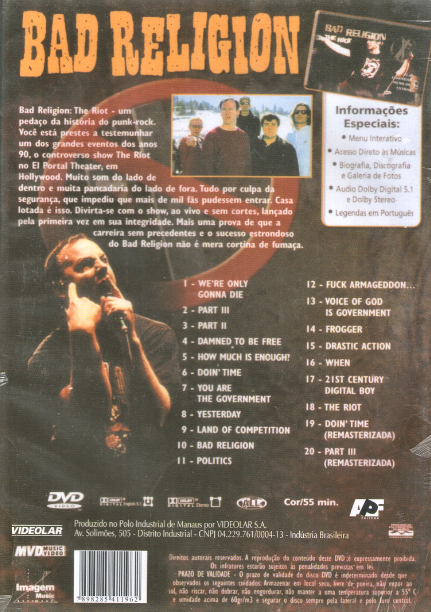 Artista(s) / Grupo: Bad Religion | Cantidad de Discos: 1 | Lanzamiento: 2000 | Género(s): Rock | Estilo(s): Punk | TÃtulo: The Riot | Norma / Región: NTSC (Región 1, 4) | Artista(s) / Grupo: Bad Religion | Cantidad de Discos: 1 | Lanzamiento: 2000 | Género(s): Rock | Estilo(s): Punk | TÃtulo: The Riot | Norma / Región: NTSC (Región 1, 4)