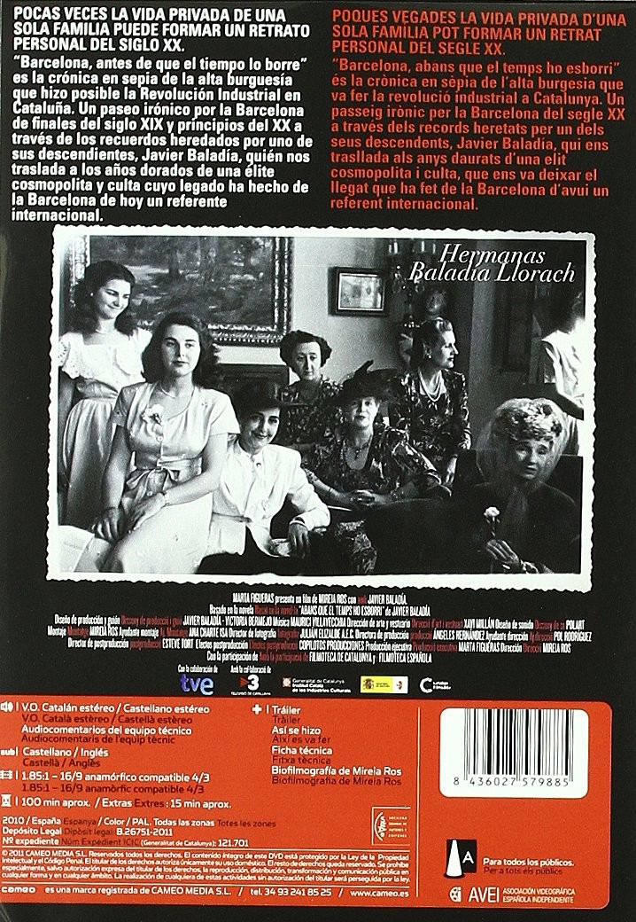 Cantidad de Discos: 1 | Lanzamiento: 2010 | Género(s): Documental | Audio: Castellano , Inglés | TÃtulo: Barcelona, abans que el temps ho esborri | Director(es): Mireia Ros | Reparto: Catalán , Castellano | Norma / Región: PAL (Región 2) | Cantidad de Discos: 1 | Lanzamiento: 2010 | Género(s): Documental | Audio: Castellano , Inglés | TÃtulo: Barcelona, abans que el temps ho esborri | Director(es): Mireia Ros | Reparto: Catalán , Castellano | Norma / Región: PAL (Región 2)