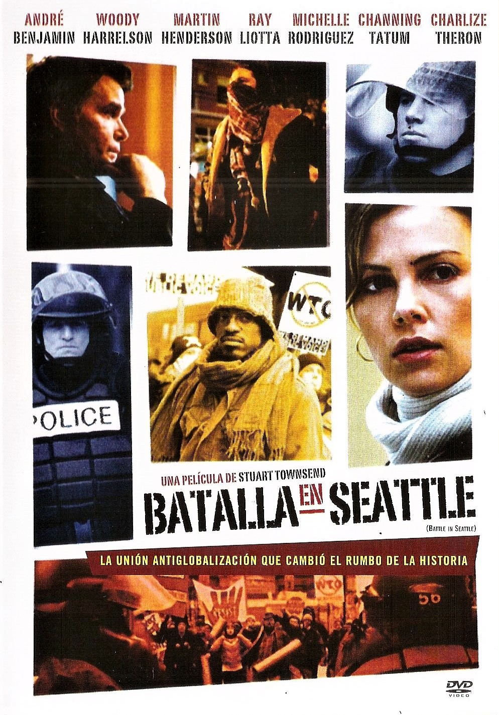 | Norma / Región: NTSC 4 | Cantidad de Discos: 1 DVD | Lanzamiento: 2007 | Género(s): Acción, Drama | Audio: Inglés (Dolby Digital 5.1) | SubtÃtulos: Español | TÃtulo: Battle in Seattle | Director(es): Stuart Townsend | Reparto: Charlize Theron, Woody Harrelson, Ray Liotta, Ivana Milicevic, Michelle Rodriguez, Connie Nielsen, Martin Henderson, Jennifer Carpenter, Isaach de Bankole, Tzi Ma, André Benjamin, Joshua Jackson, Rade Serbedzija, Channing Tatum, Gary Hudson