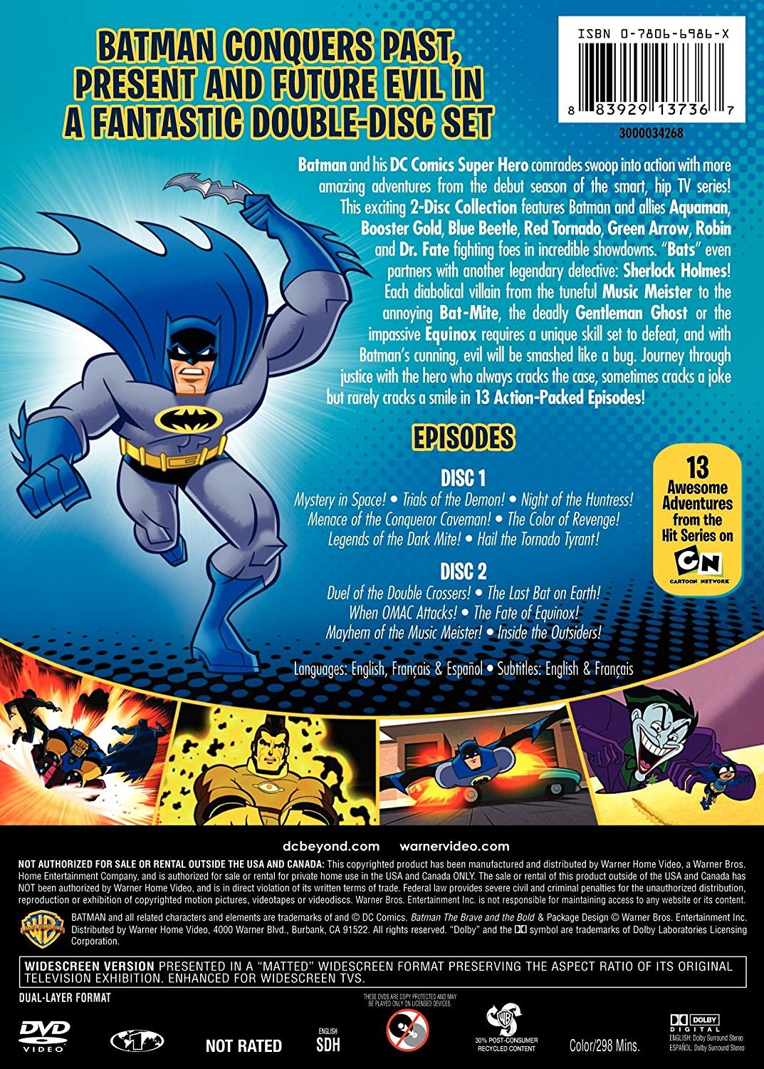 Cantidad de Discos: 2 | Lanzamiento: 2008 | Género(s): Serie de TV, Animación, Fantástico, Acción | Audio: Español, Inglés, Francés | SubtÃtulos: Inglés, Francés | TÃtulo: Batman – the Brave & the Bold – Season 1, Parte 2 | Director(es): Ben Jones, Michael Chang, Michael Goguen, Brandon Vietti, Lauren Montgomery | Reparto: Animación | Sub-CategorÃas: Animación | Norma / Región: NTSC (Región 1, 4) | Cantidad de Discos: 2 | Lanzamiento: 2008 | Género(s): Serie de TV, Animación, Fantástico, Acción | Audio: Español, Inglés, Francés | SubtÃtulos: Inglés, Francés | TÃtulo: Batman – the Brave & the Bold – Season 1, Parte 2 | Director(es): Ben Jones, Michael Chang, Michael Goguen, Brandon Vietti, Lauren Montgomery | Reparto: Animación | Sub-CategorÃas: Animación | Norma / Región: NTSC (Región 1, 4)