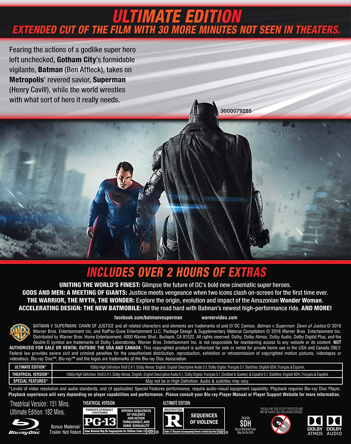 Reparto: Ben Affleck, Henry Cavill, Amy Adams, Jesse Eisenberg, Gal Gadot, Diane Lane, Laurence Fishburne, Jeremy Irons, Holly Hunter, Scoot McNairy, Jena Malone, Callan Mulvey, Tao Okamoto, Brandon Spink, Lauren Cohan, Hugh Maguire, Jason Momoa, Ezra Miller, Ray Fisher, Kevin Costner, Jeffrey Dean Morgan, Joe Morton, Jade Chynoweth