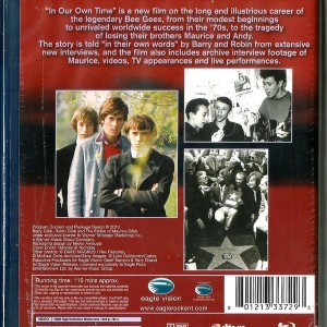 In Our Own Time es la cautivadora historia de la carrera de Bee Gees. Desde sus raÃces en el noroeste de Inglaterra, hasta sus primeros carrera en Australia, su regreso a Inglaterra y su avance internacional a finales de los sesenta y luego al estrellato mundial con Fiebre del sábado por la noche y más allá. Junto al éxito, está la angustia de las trágicamente tempranas muertes de sus primeros hijos más jóvenes. hermano Andy y luego Maurice. La historia se cuenta con sus propias palabras a través de nuevas entrevistas en profundidad con Barry y Robin Gibb y a través de extensas entrevistas. con Maurice filmado poco antes de su muerte en enero de 2003. Estos están profusamente ilustrados por actuaciones en vivo, clips de televisión y pelÃculas. y pelÃculas caseras de sus primeros dÃas. In Our Own Time presenta clips de muchos de sus grandes éxitos, entre ellos: You Should Be Dancing, New York Mining Disaster 1941, Massachusetts, Run To Me, Jive Talkin, Stayin Alive, Night Fever, How Deep Is Your Love, Tragedy and You Win Again y sus colaboraciones como Guilty con Barbara Streisand e Immortality con Celine Dion.