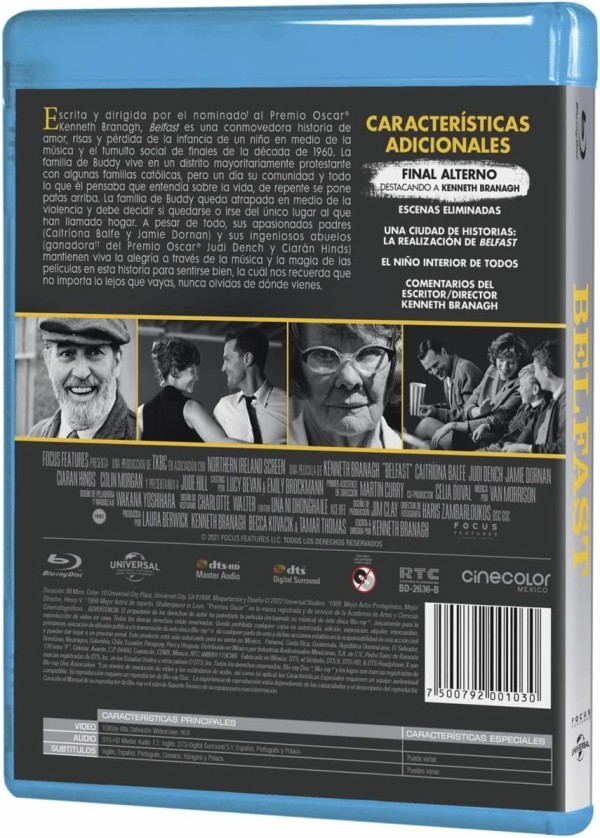 Cantidad de Discos: 1 | Lanzamiento: 2021 | Género(s): Drama | Audio: Español (Dolby Digital 5,1), Inglés (Dolby Digital 5,1) | SubtÃtulos: Inglés, Español, Francés | TÃtulo: Belfast | Director(es): Kenneth Branagh | Reparto: Jude Hill, Caitriona Balfe, Jamie Dornan, Judi Dench, Ciarán Hinds, Lewis McAskie, Lara McDonnell, Gerard Horan, Turlough Convery, Sid Sagar, Josie Walker, Chris McCurry, Colin Morgan, Freya Yates, Nessa Eriksson, Charlie Barnard, Frankie Hastings, Máiréad Tyers, Caolan McCarthy, Ian Dunnett Jr., Drew Dillon, Michael Maloney, Rachel Feeney, Elly Condron, Samuel Menhinick, James O’Donnell, Leonard Buckley, Estelle Cousins, Scott Gutteridge, Bill Branagh | Norma / Región: Multizona | Cantidad de Discos: 1 | Lanzamiento: 2021 | Género(s): Drama | Audio: Español (Dolby Digital 5,1), Inglés (Dolby Digital 5,1) | SubtÃtulos: Inglés, Español, Francés | TÃtulo: Belfast | Director(es): Kenneth Branagh | Reparto: Jude Hill, Caitriona Balfe, Jamie Dornan, Judi Dench, Ciarán Hin