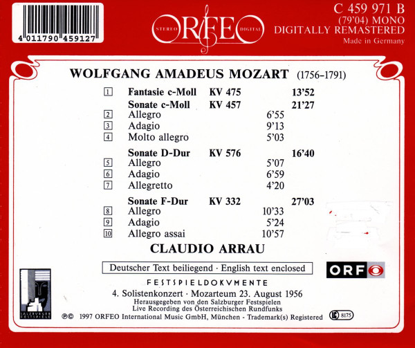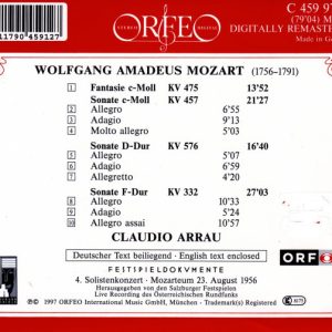 CLAUDIO ARRAU – MOZART SONATEN KV 332 – 457 – 576 / FANTASIE KV 475