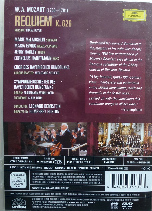 Artista(s) / Grupo: Mozart, McLaughlin · Ewing, Hadley · Hauptmann, Chor & Sinfonieorchester Des Bayerischen Rundfunks* Leonard Bernstein