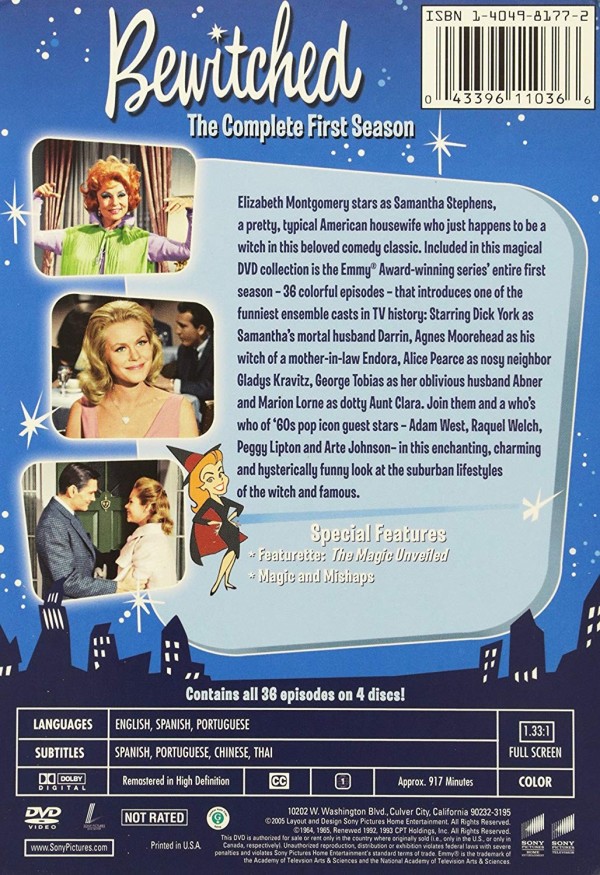 Reparto: Elizabeth Montgomery, Dick York, Agnes Moorehead, Dick Sargent, David White, Erin Murphy, George Tobias, Laura Elliott, Marion Lorne, Sandra Gould, Alice Pearce, Diane Murphy, Bernard Fox, Mabel Albertson, Dick Wilson, Irene Vernon, Maurice Evans, Cosmo Sardo, Paul Lynde