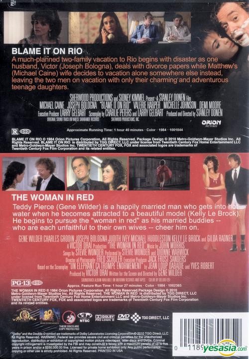 Gene Wilder, Kelly LeBrock, Charles Grodin, Joseph Bologna, Judith Ivey, Michael Huddleston, Gilda Radner, Kyle T. Heffner, Michael Zorek, Billy Beck | Norma / Región: NTSC 1 | Cantidad de Discos: 1 | Lanzamiento: 2010 | Género(s): Comedia | Audio: Inglés | SubtÃtulos: Sin Subtitulos | TÃtulo: Problemas en RÃo (1984) / La chica de rojo (1984) | Director(es): Stanley Donen / Gene Wilder | Reparto: Michael Caine, Joseph Bologna, Demi Moore, Michelle Johnson, Valerie Harper, Tessy Callado, Lupe Gigliotti, José Lewgoy, Michael Menaugh, Zeni Pereira/