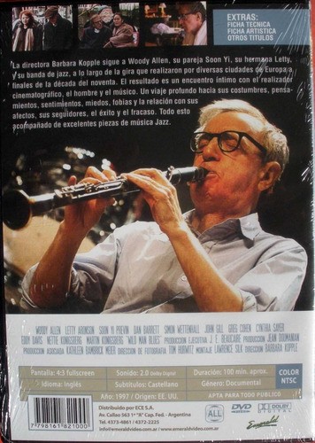 Cantidad de Discos: 1 | Lanzamiento: 1998 | Género(s): Documental, Musical | Audio: Inglés (Dolby Digital 2,0 Stereo) | SubtÃtulos: Español | TÃtulo: Wild Man Blues | Director(es): Barbara Kopple | Reparto: Documental, intervenciones de: Woody Allen, Soon-Yi Previn | Norma / Región: NTSC (Región 1, 4) | Cantidad de Discos: 1 | Lanzamiento: 1998 | Género(s): Documental, Musical | Audio: Inglés (Dolby Digital 2,0 Stereo) | SubtÃtulos: Español | TÃtulo: Wild Man Blues | Director(es): Barbara Kopple | Reparto: Documental, intervenciones de: Woody Allen, Soon-Yi Previn | Norma / Región: NTSC (Región 1, 4)