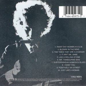 Artista(s) / Grupo: Bob Dylan | Cantidad de Discos: 1 | Lanzamiento: 1999 | Género(s): Rock, Folk, World, & Country. | Estilo(s): Blues Rock, Classic Rock, Folk, Folk Rock. | TÃtulo: Greatest Hits | Artista(s) / Grupo: Bob Dylan | Cantidad de Discos: 1 | Lanzamiento: 1999 | Género(s): Rock, Folk, World, & Country. | Estilo(s): Blues Rock, Classic Rock, Folk, Folk Rock. | TÃtulo: Greatest Hits
