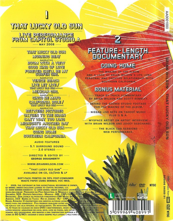 Artista(s) / Grupo: Brian Wilson | Lanzamiento: 2009 | Género(s): Rock, Pop | Estilo(s): Pop Rock | Título: That Lucky Old Sun | Director(es): George Dougherty | Norma / Región: NTSC (Región 4) | Artista(s) / Grupo: Brian Wilson | Lanzamiento: 2009 | Género(s): Rock, Pop | Estilo(s): Pop Rock | Título: That Lucky Old Sun | Director(es): George Dougherty | Norma / Región: NTSC (Región 4)