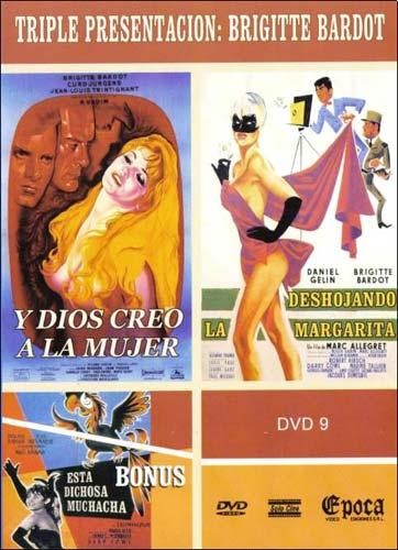 Cantidad de Discos: 1 | Lanzamiento: 1956 | Género(s): Drama, Comedia | Audio: Francés | SubtÃtulos: Español | TÃtulo: Brigitte Bardot – Y Dios Creo a La Mujer / Deshojando La Margarita | Director(es): Roger Vadim – Marc Allégret – Michel Boisrond | Reparto: Brigitte Bardot, Jean-Louis Trintignant, Christian Marquand, Curd Jurgens / Brigitte Bardot, Daniel Glin, Robert Hirsch, Mischa Auer / Brigitte Bardot, Jean Bretonnire, Francoise Fabian, Mischa Auer, Michel Serrault. | Norma / Región: Multizona