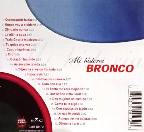 Artista(s) / Grupo: Bronco | Cantidad de Discos: 1 | Género(s): Latin | Estilo(s): Guaguancó, Salsa, Bolero | TÃtulo: Mi Historia | Artista(s) / Grupo: Bronco | Cantidad de Discos: 1 | Género(s): Latin | Estilo(s): Guaguancó, Salsa, Bolero | TÃtulo: Mi Historia