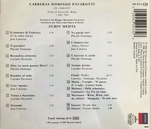 Artista(s) / Grupo: Carreras, Domingo, Pavarotti, Mehta – The Three Tenors