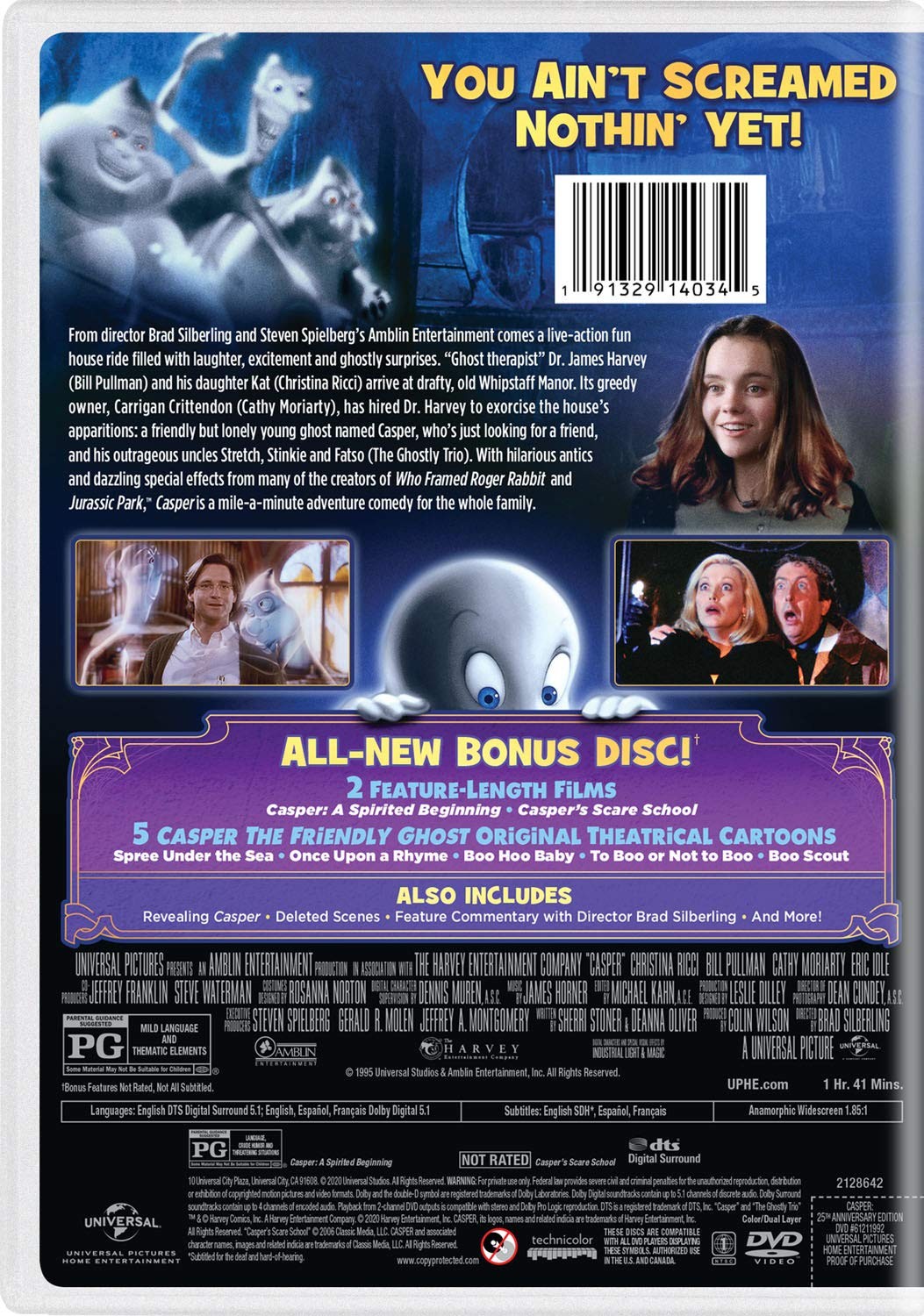 La señora Crittenden (Cathy Moriarty) contrata al doctor Harvey (BIll Pullman) para que libere su mansión de los cuatro fantasmas que la habitan. Látigo, Tufo y Gordy no toleran a los mortales dentro de la casa y su negro sentido del humor ahuyenta a los más audaces. Su sobrino Casper, en cambio, es un joven amistoso que está harto de sus tíos. Harvey se presenta en la mansión con su hija Kat (Christina Ricci), una soñadora adolescente. Ella y Casper simpatizan inmediatamente, a pesar de que tienen problemas para relacionarse. De Casper huye todo el mundo porque es un fantasma; de Kat también, en cuanto se enteran de la profesión de su padre. El fantasma y la chica son dos almas gemelas que viven en continuo conflicto con sus respectivos parientes