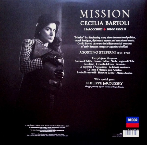 Artista(s) / Grupo: Cecilia Bartoli | Cantidad de Discos: 2 LP | Lanzamiento: 2012 | Estilo(s): Classical | TÃtulo: Mission | Artista(s) / Grupo: Cecilia Bartoli | Cantidad de Discos: 2 LP | Lanzamiento: 2012 | Estilo(s): Classical | TÃtulo: Mission
