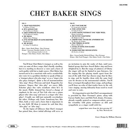 Artista(s) / Grupo: Chet Baker | Cantidad de Discos: 1 LP | Lanzamiento: 2016 | Género(s): Jazz | Estilo(s): Bop, Cool Jazz | TÃtulo: Chet Baker Sings | Artista(s) / Grupo: Chet Baker | Cantidad de Discos: 1 LP | Lanzamiento: 2016 | Género(s): Jazz | Estilo(s): Bop, Cool Jazz | TÃtulo: Chet Baker Sings