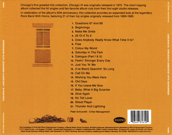 | 20 | | Street PlayerProducer – Chicago (2), Phil Ramone Written-By – Danny Seraphine*, David Wolinski* | 4:24 |