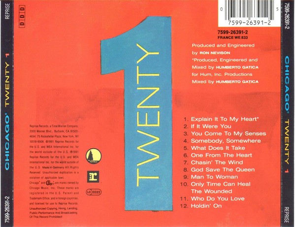Artista(s) / Grupo: Chicago | Cantidad de Discos: 1 | Lanzamiento: 1991 | Género(s): Rock, Pop | Estilo(s): Soft Rock, Pop Rock | Título: Twenty 1 | Artista(s) / Grupo: Chicago | Cantidad de Discos: 1 | Lanzamiento: 1991 | Género(s): Rock, Pop | Estilo(s): Soft Rock, Pop Rock | Título: Twenty 1