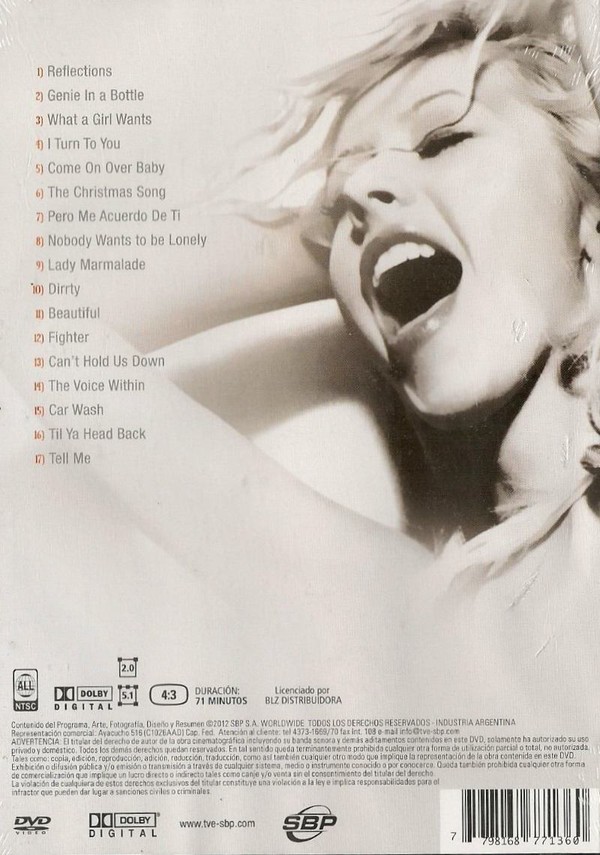Artista(s) / Grupo: Christina Aguilera | Cantidad de Discos: 1 | Lanzamiento: 2012 | Género(s): Pop, Soul, Blues, Hip Hop | Estilo(s): Vocal, Dance Pop | TÃtulo: Greatest Hits (Grandes Éxitos) | Norma / Región: NTSC (Región 1, 4) | Artista(s) / Grupo: Christina Aguilera | Cantidad de Discos: 1 | Lanzamiento: 2012 | Género(s): Pop, Soul, Blues, Hip Hop | Estilo(s): Vocal, Dance Pop | TÃtulo: Greatest Hits (Grandes Éxitos) | Norma / Región: NTSC (Región 1, 4)
