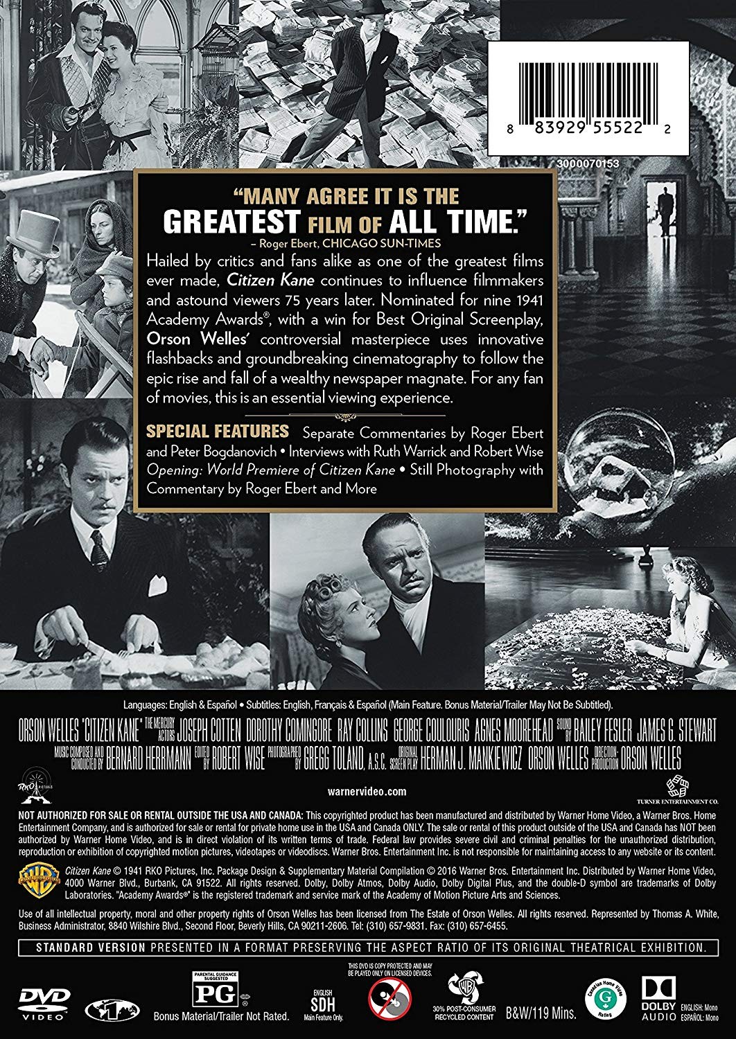 Cantidad de Discos: 1 | Lanzamiento: 2016 | Género(s): Drama, Suspenso | Audio: Español, Inglés | Subtítulos: Español, Inglés, Francés | Título: Ciudadano Kane (1941) | Director(es): Orson Welles | Reparto: Orson Welles, Joseph Cotten, Everett Sloane, George Coulouris, Dorothy Comingore, Ray Collins, Agnes Moorehead, Paul Stewart, Ruth Warrick, Erskine Sanford, William Alland, Alan Ladd, Arthur O’Connell, Fortunio Bonanova | Norma / Región: NTSC 1 | Cantidad de Discos: 1 | Lanzamiento: 2016 | Género(s): Drama, Suspenso | Audio: Español, Inglés | Subtítulos: Español, Inglés, Francés | Título: Ciudadano Kane (1941) | Director(es): Orson Welles | Reparto: Orson Welles, Joseph Cotten, Everett Sloane, George Coulouris, Dorothy Comingore, Ray Collins, Agnes Moorehead, Paul Stewart, Ruth Warrick, Erskine Sanford, William Alland, Alan Ladd, Arthur O’Connell, Fortunio Bonanova | Norma / Región: NTSC 1