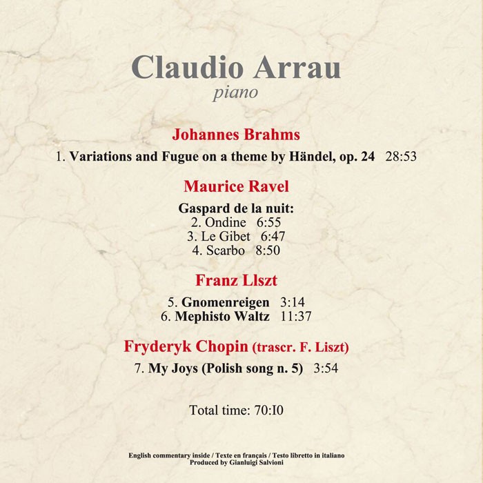CLAUDIO ARRAU – BRAHMS – REVEL – LISZT & CHOPIN – SYMPHONIA