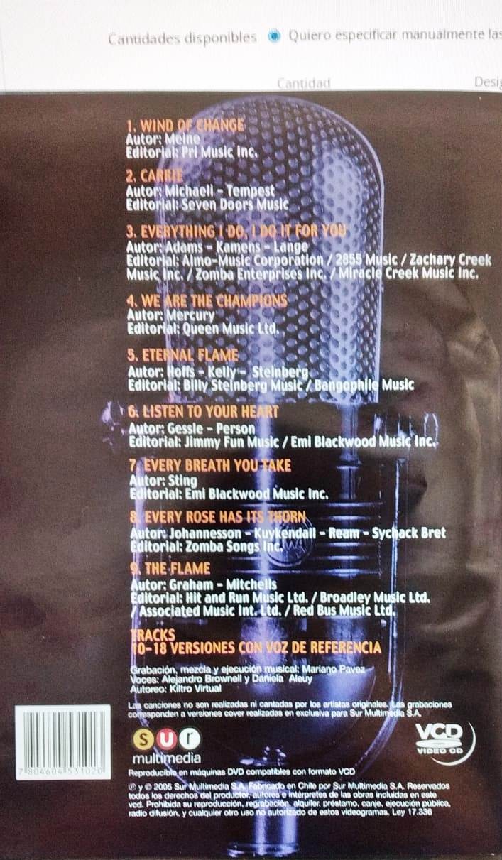 Cantidad de Discos: 1 | Lanzamiento: 2005 | Género(s): Latinos | Estilo(s): Latin | Título: Club de karaoke anglo – Rock Ballads | Norma / Región: Multizona | Cantidad de Discos: 1 | Lanzamiento: 2005 | Género(s): Latinos | Estilo(s): Latin | Título: Club de karaoke anglo – Rock Ballads | Norma / Región: Multizona