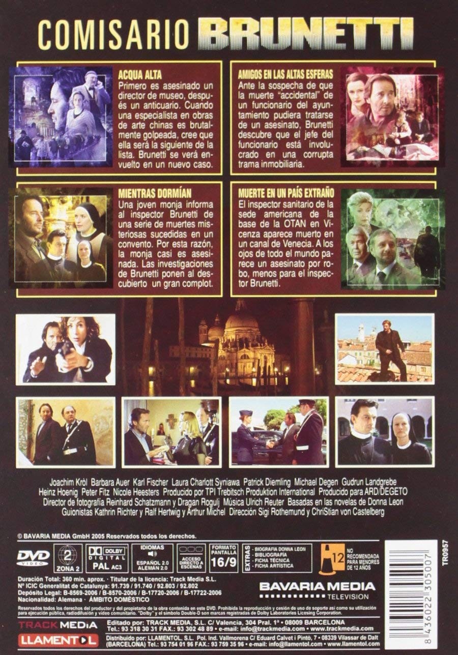 Cantidad de Discos: 4 DVD | Género(s): Suspenso, Intriga | Audio: German (Dolby Digital 2.0), Castilian (Dolby Digital 2.0) | Doblado: Alemán – Castellano | TÃtulo: Comisario Brunnetti: Donna Leon | Director(es): Sigi Rothemund, Christian von Castelberg | Reparto: Joachim Kròl, Barbara Auer, Karl Fischer, Michael Degen | Sub-CategorÃas: Suspenso | Norma / Región: PAL (Región 2) | Cantidad de Discos: 4 DVD | Género(s): Suspenso, Intriga | Audio: German (Dolby Digital 2.0), Castilian (Dolby Digital 2.0) | Doblado: Alemán – Castellano | TÃtulo: Comisario Brunnetti: Donna Leon | Director(es): Sigi Rothemund, Christian von Castelberg | Reparto: Joachim Kròl, Barbara Auer, Karl Fischer, Michael Degen | Sub-CategorÃas: Suspenso | Norma / Región: PAL (Región 2)