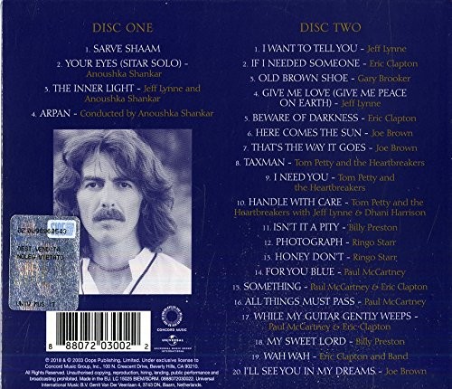 Artista(s) / Grupo: Various | Cantidad de Discos: 2 | Lanzamiento: 2018 | Género(s): Rock, Folk, World, & Country | Estilo(s): Rock & Roll, Pop Rock, Classic Rock | TÃtulo: Concert For George Harrison | Artista(s) / Grupo: Various | Cantidad de Discos: 2 | Lanzamiento: 2018 | Género(s): Rock, Folk, World, & Country | Estilo(s): Rock & Roll, Pop Rock, Classic Rock | TÃtulo: Concert For George Harrison