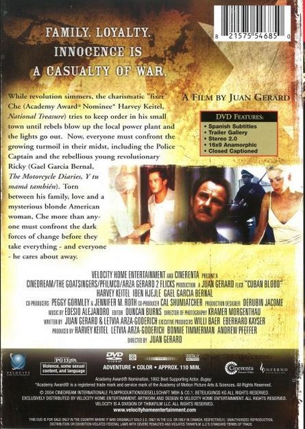 El espectro de la revolución se cierne sobre un pequeño pueblo cubano en Cuban Blood de 2003, el primer (y, hasta la fecha, único) largometraje del director Juan Gerard. El actor veterano y versátil Harvey Keitel, cuya participación claramente ayudó a hacer la pelÃcula, interpreta al carismático Che (no, ese Che no), un pez grande en el pequeño estanque que es HolguÃn, un lugar pintoresco que está relativamente alejado del pro-Castro. , rebelión anti-Batista arrasó el paÃs en 1958. Pero cuando los rebeldes cortaron la energÃa eléctrica de la ciudad en la escena inicial, un apagón que dura un año completo, las cosas comienzan a ponerse un poco complicadas, y el Che y su familia (incluida su nieto, claramente un sustituto del propio Gerard) enfrentan algunas decisiones y cambios importantes. Por supuesto, no es la pelÃcula más original jamás realizada. El uso de un vagabundo aparentemente loco (interpretado por Georg Stanford Brown) como coro griego profético no es un recurso infrecuente; y como han señalado varios crÃticos, abundan los ecos de otras pelÃculas, desde Cinema Paradiso y Casablanca hasta Rebelde sin causa y más. De hecho, Cuban Blood se conocÃa antes como Dreaming of Julia, una referencia tanto a la pelÃcula que se proyecta en el cine local cuando se apaga la luz como al nombre real de la enigmática «La Gringa», la única estadounidense en la ciudad ( la actriz Iben Hjejle es en realidad danesa, aunque nunca lo sabrÃas por su inglés perfecto y sin acento). Al final, la afirmación del material promocional de que es «una aventura repleta de estrellas en la tradición de Érase una vez en América (la épica de Sergio Leone)» es extremadamente hiperbólica. No obstante, esta pelÃcula, a veces divertida, a veces dramática, conmovedora y triste, sentimental pero no demasiado, atraerá a espectadores de todas las edades. –Sam Graham