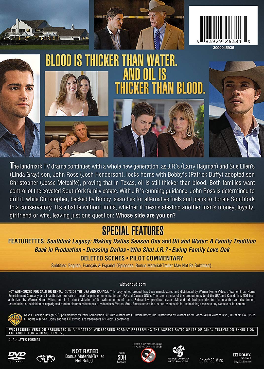 Cantidad de Discos: 3 | Lanzamiento: 2012 | Género(s): Serie de TV, Drama, Intriga | Audio: Inglés (Dobly Digital 5,1) | SubtÃtulos: Español, Inglés, Francés | TÃtulo: Dallas – 1 Temporada | Director(es): Michael M. Robin, Steve Robin, Jesse Bochco, Millicent Shelton, Rodney Charters, Randy Zisk, Ken Topolsky, Michael Katleman, Marc Roskin, Stephen Herek, Anton Cropper, Patrick Duffy, Bethany Rooney | Reparto: Larry Hagman, Patrick Duffy, Linda Gray, Steve Kanaly, Charlene Tilton, Josh Henderson, Jesse Metcalfe, Jordana Brewster, Julie Gonzalo, Brenda Strong, Marlene Forte, Kuno Becker, Mitch Pileggi, Emma Bell, Kevin Page, Judith Light, Ken Kercheval, Glenn Morshower, Antonio Jaramillo, Callard Harris, Donny Boaz, AnnaLynne McCord, Alex Fernandez, Faran Tahir, Amber Bartlett, Leonor Varela, Carlos Bernard, Gino Anthony Pesi | Norma / Región: NTSC 1 | Cantidad de Discos: 3 | Lanzamiento: 2012 | Género(s): Serie de TV, Drama, Intriga | Audio: Inglés (Dobly Digital 5,1